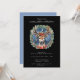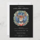 Feriado de inverno, Feriado Vermelho Berries, Convite de Natal com fundo azul preto e poeirento. Feliz Solstício de inverno! Celebre a mais longa e mágica noite do ano com este belo design de Natal Feriado de inverno Solstício. Este belo design de aquarela moderno apresenta uma coroa verde, cervo com galhos, estrelas douradas e lua azul crescente, galhos, velas vermelhas com chama brilhante e pontos metafísicos de cristal de ouro esotérico. Texto pronto para personalizar com suas informações.