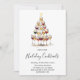 Levante um copo com estilo com este elegante convite de festas de coquetel de férias com uma torre de vidro de aquarela, arranjada na forma de uma árvore de Natal, revestida com uma estrela ouro. Perfeito para encontros festivos, festas de férias de companhia, ou celebrações íntimas de Natal com amigos. A tipografia moderna e o fundo branco limpo tornam este convite sofisticado e alegre. Personalize facilmente com seus detalhes de eventos para uma celebração sazonal memorável.