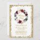 Convite Do Partido Feriado Floral Wreath Marsala, Elegante Watercolor Burgundy. Inclui belos rosas e verde botânico. Dourado quadro de brilho.