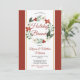 Basta os detalhes de suas celebrações para completar esta bonito espiral verde-mudo e vermelha floral e bagas sob o design de Natal Brunch sobre um painel branco com faixas de borda de ouro mudas em um fundo vermelho-sujo. A parte traseira apresenta um buquê floral coordenado em cantos opostos (superior esquerdo e inferior direito). Um estilo simples e moderno que certamente impressionará os seus destinatários.