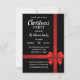 Convites de festas de Natal Modernos personalizados em cores vermelha, preta e branca. Fundo em preto, em vermelho. Grande arco de presente. Modelo editável - simplesmente adicione seu texto. Todo texto pode ser alterado fonte, cor e tamanho. Perfeito para festa em casa, festas de escritório, festa de férias ou qualquer outra festa ou ocasião de inverno.