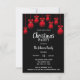 Convites de festas de Natal Modernos personalizados em cores vermelha, preta e branca. Fundo em preto, em vermelho. Enfeites vermelhos com arcos pendurados no topo. Modelo editável - simplesmente adicione seu texto. Todo texto pode ser alterado fonte, cor e tamanho. Perfeito para festas caseiras, festas de escritório, festa de janto de férias ou qualquer outra festa ou ocasião de inverno.