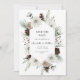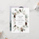 Rustic Winter Holiday Save the Date Invitation com belos florais de inverno sofisticados com pínus cones e cada verde e uma foto de cheio do casal feliz no verso do anúncio. Nosso modelo de alta qualidade torna tão fácil personalizar seu convite. O convite faz parte de uma coleção.
