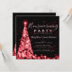 Convite de festas de lar de férias Elegante, design com Luz de árvore de Natal Vermelha Festiva, nome e data personalizados e texto adicional