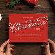 Esta design apresenta um convite de festas de escrita de caligrafia de Natal com um design simples floco de neve de inverno xadrez vermelho, um clássico minimalista e moderno, uma letra de tipografia de tendência na moda, uma festa de Natal, um convite para festas corporativas de amigos de família, com um estilo de letra de texto de gradiente prateado, um design tradicional na moda criativo, uma elegante elegância simplista contemporânea e simples festa de Natal
