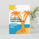 Convite para Férias de Verão da Reunião Familiar, com nome familiar e palmeiras personalizáveis. A design mostra sol, palmeiras, horizonte azul e praia brilhante ouro, com tipografia ousada. Simplesmente personalize este convite de reunião com o nome da família na frente e personalize seus detalhes de férias e instruções no verso. Obtenha presentes correspondentes para toda a família para fazer da sua próxima viagem um feriado para se lembrar.