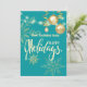 Férias felizes flocos de neve dourados e enfeites de Natal, flocos de neve, luzes de corda, cartão de convite verde de férias moderno e elegante.