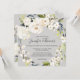 Com um popular esquema de cores neutro, este design de convite de casamento quadrado apresenta uma bela coroa de flores brancas de aquarela com um verde à direita sobre um fundo popular (bege cinza). As flores incluem rosas, híbridos e florais mistos correspondentes a um efeito de jardim fresco. Os emparelhamentos de texto usados neste design apresentam os nomes da noiva e do noivo de forma destacada usando um rosto de tipo manuscrito. Personalize o modelo de texto fácil de usar com seus detalhes de casamento.
