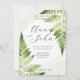 Convite de Casamento de Fern Verde Minimalista. Simples e tendencioso convite de casamento de ilustração botânica com manchas de aquarela.