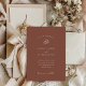 Estes convites de casamento castanho, apesar de elegantes, têm um estilo rústico moderno e minimalista, com escrita branca e texto clássico. Um par de ferraduras desenhadas à mão é apresentado em uma sutil ilustração, para um olhar atualizado para o seu casamento no país, no oeste, no rancho ou no tema caubói.