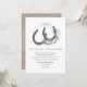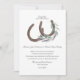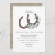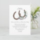 Bonita lavanda e ferraduras rústicas convite para casamento com madeira de celeiro no lado de trás. É preferível uma formulação elegante e tradicional.