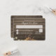 Ferraduras amarradas com um nó de corda, madeira de celeiro rústica e luzes de corda RSVP para complementar nosso convite de casamento. Madeira escura e luzes cintilantes acima com áreas de caixa de texto mais claras para os convidados escreverem. No verso, os nomes dos noivos em estilo caligráfico para um toque pessoal adicional.