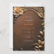 Desvendar a beleza do seu amor com este convite encantado e Dourado de casamento. Apresentando um fundo marrom-decorativo texturizado adornado com decor metálico-ouro em efeito 3D, este convite irradia sofisticação e charme. Personalize para capturar a essência do seu dia especial.
