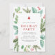 Convide a família e os amigos para comemorar o feriado com este convite de festa de férias verde. Apresenta ilustrações em aquarelas de folhas sagradas, agulhas de pinheiro e eucalipto e vergreens. Personalizar por evento, nomes, data, hora, endereço e outros detalhes. Itens correspondentes estão disponíveis. Este convite festivo para festas está disponível em outros estoques de papelão.