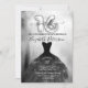 Vestido preto elegante sobre fundo prateado Doce 16 convite de aniversário.
