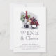 Um elegante e moderno modelo de 50º convite de aniversário para mulheres com um tema de provando de vinho, com ilustração aquosa de uma garrafa de vinho, queijo e uva em uma platter. Um vinho clássico e queijo de 50 anos convidam uma mulher no seu quinquagésimo aniversário celebrando com uma festa de provando de vinho, vinho e queijo, numa adega ou restaurante, bistro... Lavanda empoeirada e branca, com sotaques entorpecidos.