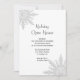 Convide convidados para uma comemoração de férias de inverno com o elegante Convite de festas da Casa Aberta de Férias Brancas. Esta casa aberta de férias de inverno elegante e festiva mostra um intrincado design de floco de neve branco sobre um fundo branco.