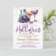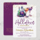 Um lindo convite de festas roxo e dourado da Open House. Esta design verde e roxa divertida apresenta garrafas potas mágicas assustadoras e dois coquetéis. Fácil de personalizar com os seus próprios detalhes de festa do Dia das Bruxas.
