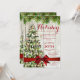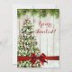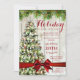 Natal / Casa Aberta / modelo de Convite de festas Jante com "Árvore de Natal com Luzes Fadas" e Fita Vermelha sobre fundo de madeira rústico. Imprima aos seus amigos este design de convite sofisticado e elegante. Totalmente personalizável!