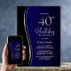 Convide seus amigos e entes queridos com este convite de festas aniversário de 40 anos azul e preto moderno. A área de texto personalizável neste modelo de convite permite que você inclua facilmente todos os detalhes necessários para sua celebração especial de aniversário, incluindo as informações de data, hora, local e RSVP. Uma variedade de tipos de papel e estilos de canto estão disponíveis para seus convites exclusivos, juntamente com a opção de download se você preferir um formato digital.