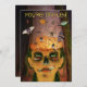 Este convite único e assustador para a festa do Dia das Bruxas tem uma garota zombie nele, parada em uma floresta escura, seus olhos olhando para seu cérebro. Vermes, moscas, aranhas, mariposas, besouros e borboletas pousam nela e flutuam ao redor de sua cabeça. Estes convites estranhos e assustadores são perfeitos para uma festa de casa assombrada para adultos. Use as modelos fáceis para adicionar seu texto ao verso. NOTA: as palavras "Você é Convidado", "Halloween" e "RSVP" são design em vez de texto editável. Entretanto, você pode excluí-los ou movê-los/redimensioná-los separadamente em "personalizar/personalizar ainda mais". Celebre o Halloween com estes convites assustadores.