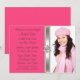 Convite de bat mitzvah de foto rosa choque com Estrela de David prateada. Adicione seus detalhes na frente e/ou atrás simplesmente adicionando sua foto e detalhes do evento, estilo de fonte, tamanho e cor da fonte e texto. Observe que - todos os desenhos de convite que você encontrará no Zazzle são gráficos impressos em papel liso sem joias, laços, relevos, rebaixados ou peças adicionais.