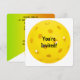Bola amarela brilhante em branco para uma festa de aniversário de picleball. Todo o texto pode ser alterado e pode ser usado para qualquer aniversário de idade.