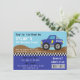 O seu filho adora caminhões de monstro? Por que não organizar uma festa de caminhão monstro para ele começando com este convite colorido e atraente que vem com elementos de corrida que incluem cores de azulejos azuis, pretos e brancos, um caminhão monstro azul legal com ícone de raio ao lado, um bilhete de admissão com o local chamado língua na bochecha como uma pista de corrida e até um código de bar falso para digitalização. Você pode personalizar facilmente com os detalhes da sua festa e até mesmo o nome no caminhão!