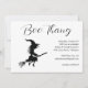 Uma bruxa voadora sobre uma vassoura sobre um fundo branco, e a tendência dizendo Boo Thang sotaque este Convite do Festa de Halloween.