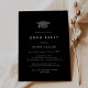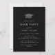 Este convite de festas preto escuro e boné de formatura negro é perfeito para uma festa moderna ao ar livre. O simples design escuro apresenta uma tipografia clássica, sofisticada, em preto e branco, com um chapéu de graduação em branco e dourado.