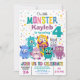 Bons Monstros Coloridos Convite de festas Aniversário de criança. Personalizar para as suas especificações de evento.