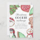 Convide amigos para trocar bolachas favoritas com o nosso convite para troca de bolachas de Natal festivo. Os detalhes da sua festa de troca de biscoitos aparecem em letras de cinza, cercadas por biscoitos festivos decorados em vermelho, verde e branco.