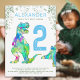 Prepare-se para rugir com o entusiasmo e comemorar o seu segundo aniversário do T-Rex no estilo judaico pré-histórico! Este convite de festas de segundo aniversário de dinossauros coloridos e divertido apresenta um T-Rex vibrante e uma alegre folhagem de Stegossauro e eucalipto Jurássico perfeita para jovens fãs de dino. Personalize com o nome, a idade e os detalhes da festa da criança de aniversário para uma festa de 2º aniversário ousada, azul-esverdeada. Com a obra de arte original de Catherine Sweetman, este convite temático Jurássico traz a aventura à vida, acolhendo todos os amigos de dinossauros à festa!