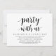 Cartão de convite de elopement de casamento temático de roteiro moderno (Festa conosco). É perfeito para o seu jantar de elopement de casamento casual à beira do lago, dança e festa.