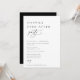 Convite de festa Contemporâneo Chic Minimalista, Feliz para Sempre. Tipografia na cor preta com fundo na cor branca na frente e parte de trás preta correspondente.