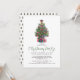 Celebre a temporada com estilo com este convite de festa de Natal vibrante e caprichoso, apresentando uma árvore de fir de aquarela adornada em tons alegres de rosa, magenta, roxo e dourado. Aninhada em uma cesta de vime rústica e cercada por presentes festivamente embrulhados, a árvore brilha com laços, sinos, enfeites e acentos de biscoito de gengibre — encimada por um charmoso laço magenta e sinos. Caligrafia manuscrita em verde combina com uma fonte sans serif limpa em cinza coordenado para um visual moderno e alegre. O verso mostra a árvore colorida em um padrão para um toque adicional de elegância. Perfeito para soirées de Natal, festas de coquetel ou eventos corporativos, este design atraente captura a tendência de Natal rosa brilhante de 2025 com elegância