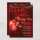 Um convite elegante para festas de Natal com bolas de Natal vermelhas, luzes de cordas em fundo vermelho. Estes belos convites de Natal são perfeitos para convites de festas de janto de Natal, convites para troca de presentes de Natal, angariadores de fundos de Natal, convites para bolas de férias e outros eventos realizados durante o mês de dezembro. Use apenas os campos modelo para adicionar suas próprias informações de evento.