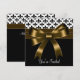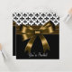 Convite de festa com desenho elegante de laço dourado e Fleur de Lis preto e branco. Este modelo funciona bem como convite para uma festa de aniversário, coquetel, festa de feriado, festa corporativa, gala formal, baile de formatura, festa de aposentadoria, festa de formatura, despedida de solteira, festa de noivado, casamento, festa de Ano Novo e qualquer outra ocasião especial. Adicione seus detalhes na frente e no verso simplesmente escolhendo o botão laranja "Personalize!" para começar a adicionar os detalhes do seu evento, estilo de fonte, tamanho e cor da fonte e texto. Convites de festa com Fleur de Lis dourada. Por favor, observe que todos os desenhos de convite que você encontrará no Zazzle são gráficos impressos em papel simples sem joias, laços, relevos, dourados ou peças adicionais.