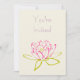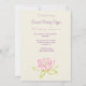 Convite de festa genérico. Um esboço de uma flor de lótus / nenúfar. Pétalas delineadas em rosa e folhas delineadas em verde. Personalize com os detalhes da sua festa.