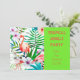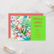 Um convite vibrante colorido adequado para uma festa temática da selva ou da ilha tropical. Este design apresenta um flamingo rosa com palmas, hibisco e folhagem de plantas da selva. A cor de fundo do texto e do verde limão é totalmente personalizável.