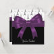 Convite de festa com design elegante em preto e branco da Torre Eiffel de Paris com um lindo laço de ameixa. Este modelo de design funciona bem como um convite para uma festa de aniversário, festa de coquetel, festa de feriado, festa corporativa, formal gravata preta, baile de formatura em Paris, festa de aposentadoria, festa de formatura, despedida de solteira, festa de noivado, casamento, festa de Ano Novo e qualquer outra ocasião especial. Adicione seus detalhes na frente e/ou verso adicionando detalhes do evento, estilo de fonte, tamanho e cor da fonte e texto. Por favor, note que - todos os designs de convite que você encontrará no Zazzle são gráficos impressos em papel simples sem joias, laços, relevos, em relevo ou peças ou partes adicionadas.