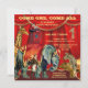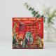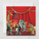 Convite de festa de aniversário de estilo circense retrô com elefante, zebra, girafa, urso, acrobata e domador de circo em um fundo de cortina vermelho e dourado. Este lindo convite de festa de aniversário de circo vintage vermelho e dourado é facilmente personalizado para a sua festa ou evento, adicionando os detalhes do evento, estilo de fonte, tamanho e cor da fonte e texto.