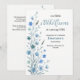 Celebre o primeiro aniversário do seu pequeno com este convite encantador, apresentando um fundo branco suave e uma borda de flores silvestres em tons de azul que florescem ao longo da borda lateral. Os detalhes da festa são lindamente organizados em uma mistura de fontes elegantes de caligrafia e serifadas clássicas para um visual atemporal e doce. A parte traseira apresenta as mesmas flores silvestres vibrantes para um design coeso e inspirado no jardim. Fácil de personalizar com o nome da criança e detalhes da festa.