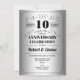 Convite de Aniversário de 10 Anos de Casamento. Cartão de convite prateado e preto. Perfeito para uma celebração elegante. Pode ser personalizado para qualquer ano.