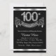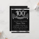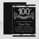 Convite de festa de 100 anos preto e prata elegante com números de diamante e faixa em um fundo prateado e preto. Este convite de festa de 100 anos preto e prata é facilmente personalizado para o seu evento. Este design impressionante funciona bem para homem ou mulher. Este é um design impresso sem diamantes reais, prata, glitter, etc.
