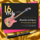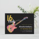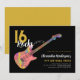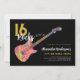Convites para festa de 16 anos com um padrão colorido e descolado de guitarra elétrica legal e arte de guarda-pick rosa e ilustração de notas musicais com tipografia de caligrafia moderna preta e dourada personalizada. Este modelo fácil de usar cria o convite personalizado perfeito para celebrar dezesseis anos ao estilo rock n roll e é ideal para guitarristas, músicos e amantes da música. Qualquer guitarrista dirá que nunca se tem guitarras demais. Este design moderno e legal de instrumento musical celebra a energia musical deste instrumento maravilhoso e é a maneira perfeita de arrasar na celebração dos dezesseis anos. Arte original da artista Catherine Sweetman