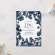 Convite de festa de 16 anos azul marinho/índigo com folhas e floral em branco. Entre em contato conosco para obter ajuda com personalização ou produtos correspondentes.