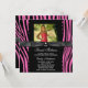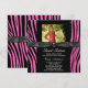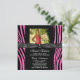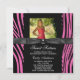 Convite de festa de aniversário de dezesseis anos doce com zebra rosa quente e laço preto, foto de zebra rosa quente.
