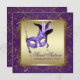 Convites Festa de 16 Mascarada, púrpura e Dourada