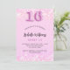 Um convite moderno, na moda e glamouroso para uma festa de aniversário Doce 16, 16. Um fundo cor-de-rosa com confete. O nome é escrito com um moderno estilo escrito à mão. Personalize e adicione os detalhes da sua festa. O número 16 é escrito com uma fonte de estilo de balão, script.